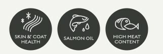 Crude protein 36%, crude fat 17%, crude fiber 3%, crude ash 9.5%, moisture 7%, Omega 6 3.5%, Omega 3 0.8%, calcium 1.3%, phosphorus 1.1%.
