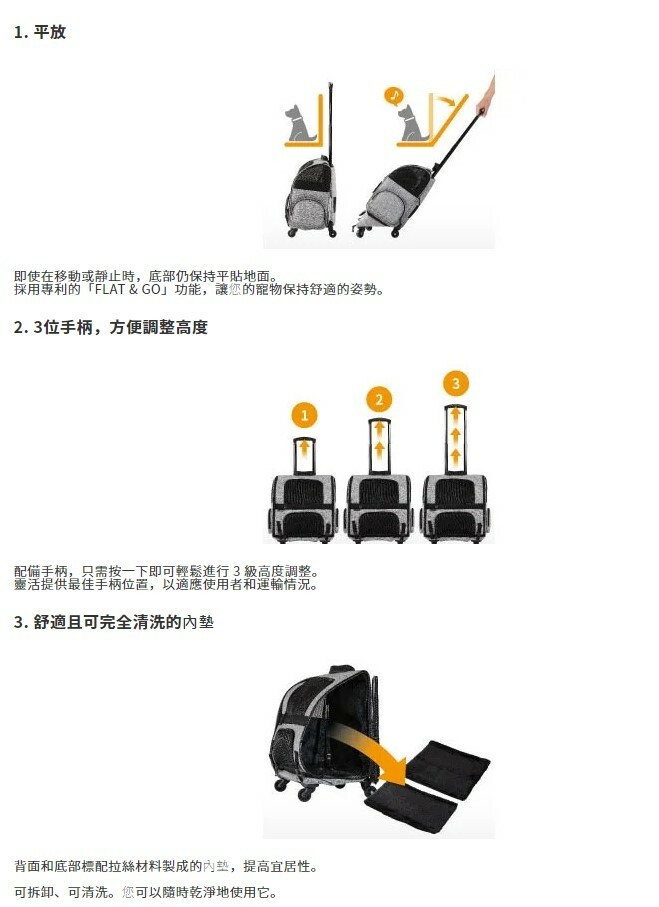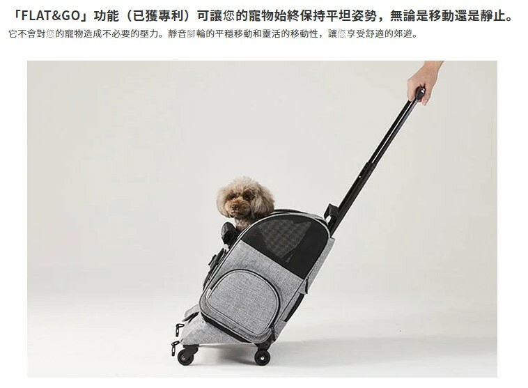 "FLAT&GO" function (patented) keeps your pet in a flat position
