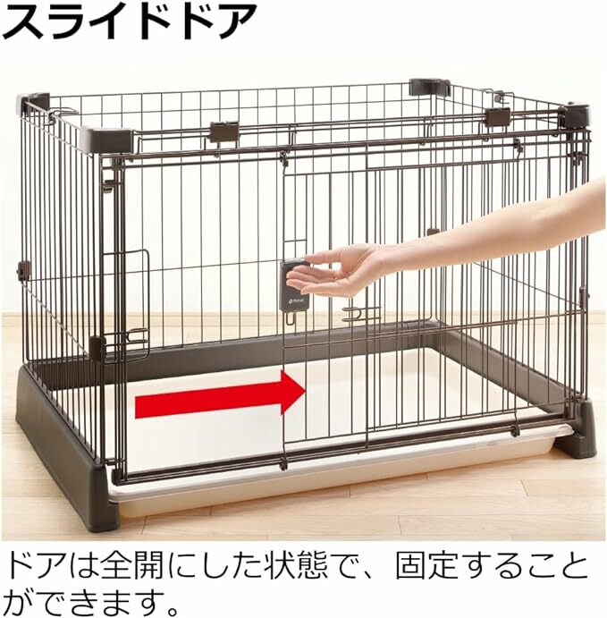 The door can be fixed when fully open.