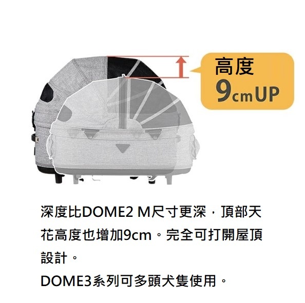 能使用的犬種更多囉!升級後的DOME3 座艙。大小適中