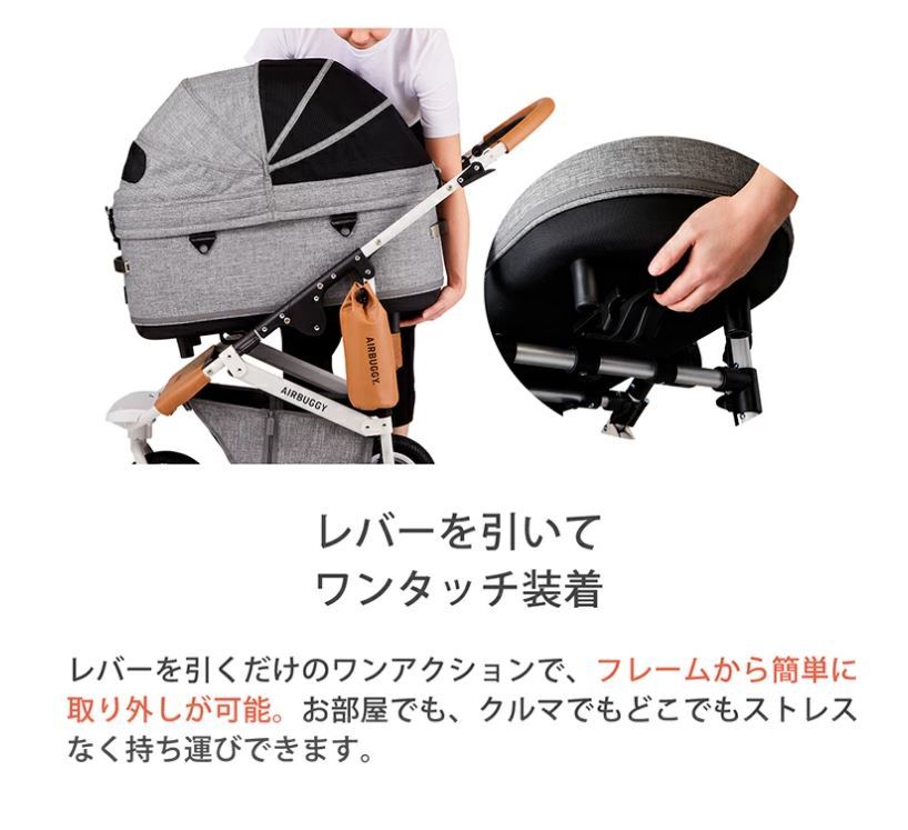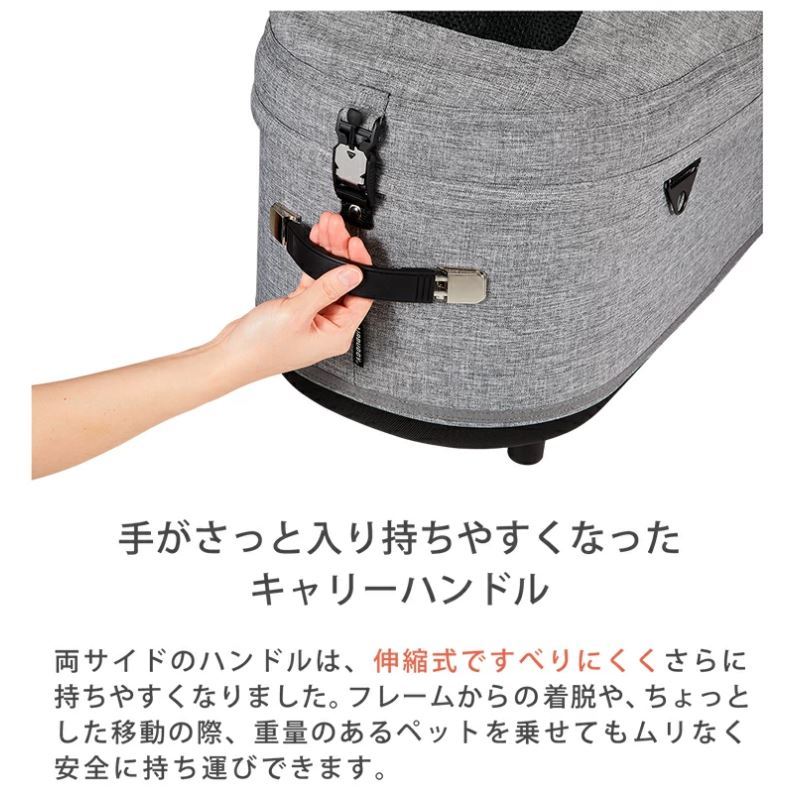 兩手握住全新彈性拉把搬運移動。AIRBUGGY搭配最新DOME3座艙後