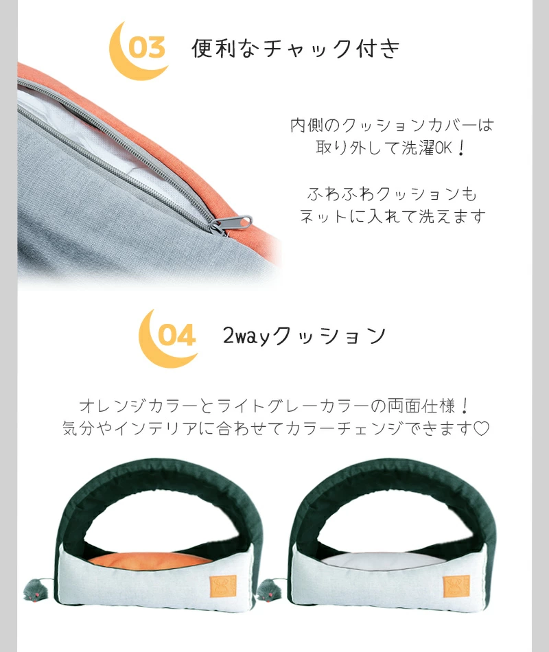 裡面的坐墊柔軟蓬鬆。它有橙色和灰色兩面可供選擇,因此您可以根據心情進行更換。