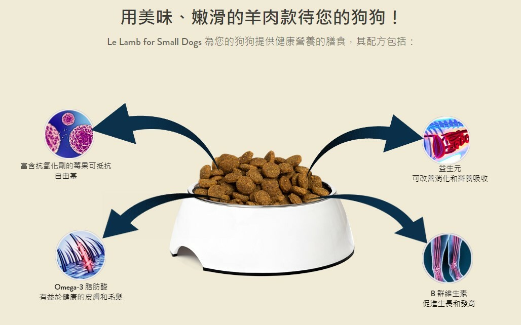 給您的寵物最好的餵食。購買 Le Lamb for Small Dogs,讓您的小狗在美味又營養的飲食中茁壯成長。 Le Lamb 非常適合那些珍惜寵物健康和幸福的人,保證每一碗都能讓您滿意。