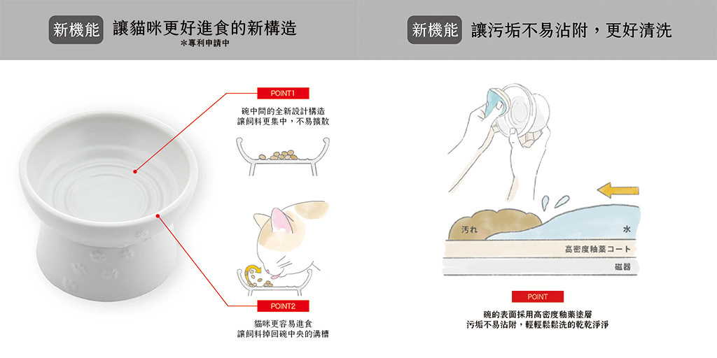 貓壱持續精進的貓體工學設計,為讓貓咪更容易進食,透過本系列傳達給您和貓咪這份感動與幸福。