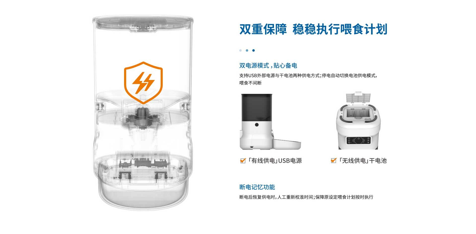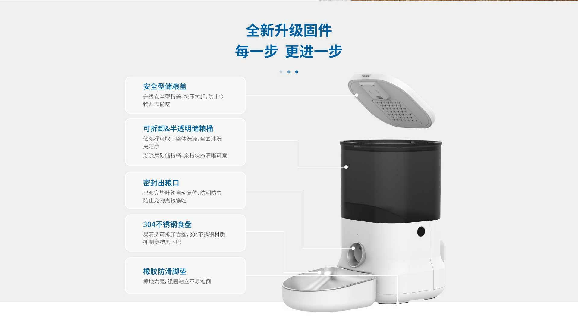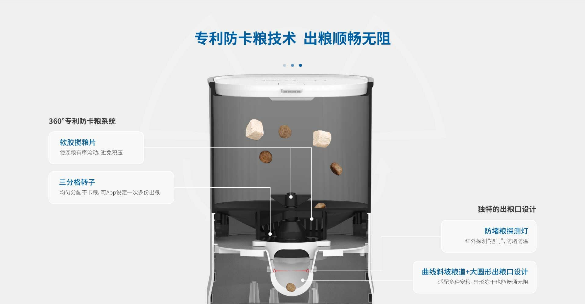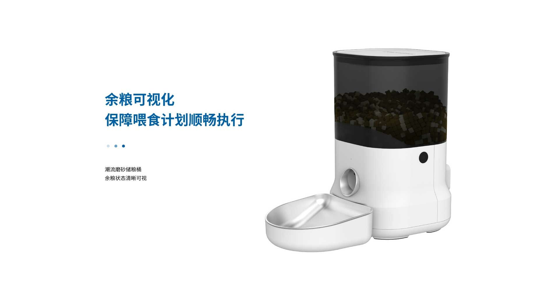無需配網,通電即用。透過設定餵食器表面的操作面板,進行定時定量的餵食計畫。 造型時尚簡約,犬貓適用。
